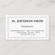 Este diseño de tarjeta de visita limpia, tradicional y liso presenta un borde de doble línea con una línea discontinua entre ambos. Podría ser utilizado por un profesional como un periodontista, cirujano oral, un dentista general o un dentista estético. El nombre, la profesión y los datos de contacto se pueden personalizar.