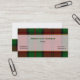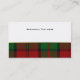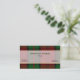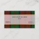 Tarjeta de presentación de cuadros escoceses elegante realizada en el patrón tradicional de tartán del clan Dunbar en verde, rojo y negro. La parte delantera de la tarjeta tiene una banda blanca semitransparente con bordes en tono dorado, en el medio de la tarjeta, con texto personalizado en verde y negro. La parte trasera de la tarjeta es blanca, con una franja de cuadros escoceses en la parte inferior y texto negro en la parte blanca. Personalice todo el texto para adaptarlo a sus necesidades. Tarjeta de presentación atractiva y de aspecto profesional.