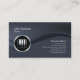 Esta sencilla y elegante tarjeta de presentación de pianistas profesionales presenta un fondo negro. Una onda de matiz negro se mueve de izquierda a derecha, dividiendo la tarjeta en dos secciones. Un icono circular de teclas de piano cromado se sienta en esta onda, en el lado izquierdo de la tarjeta, mientras que su nombre y título aparecen en la parte superior izquierda y su nombre de negocio y detalles de contacto aparecen en la parte inferior derecha. Diseñado para negocios o profesiones relacionadas con la música, bajo, bajista, bajista, bajista, músico, banda, entretenimiento, temas de rock.