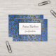 Tarjeta profesional - fondo de color azul y pequeños círculos dorados.