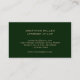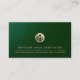 Haga una declaración en el mundo legal con nuestra tarjeta profesional de visita legal. Diseñada para abogados y abogados, esta tarjeta de visita cuenta con un fondo de impresión de cuero verde con un emblema del logo con tema legal de oro pintado en el frente. Personalizar con el nombre, dirección e información de contacto de su empresa en la tipografía clásica de oro. Impresione a sus clientes y colegas con esta sofisticada tarjeta de visita.