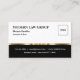 Elegante tarjeta profesional de oficina de monograma diseñada profesionalmente para un abogado con su elegante plantilla de diseño en oro, negro y blanco con plantillas de texto para personalizar en línea, incluyendo emblema de monograma con iniciales de nombre que puede personalizar. Creado para abogados de un grupo de derecho de sociedades a un pequeño profesional jurídico independiente. Presentado en material de tarjetas de visita brillante de alta calidad.