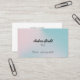 Esta tarjeta de visita presenta un diseño sencillo y moderno con un degradado en tonos rosa y azul. He incluido plantillas en la parte delantera y trasera para su propia información y personalización. Hay varias opciones de papel disponibles, asegúrese de comparar el espesor y el brillo que serían adecuados para su negocio. Todos los artículos son rellenados por Zazzle y están garantizados un 100% de satisfacción. Para sus pedidos y problemas de envío, póngase en contacto con el Servicio de Atención al Cliente de Zazzle a través de https://goo.gl/nCgptf