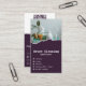 Una plantilla profesional de tarjeta profesional de limpieza de casas moradas tiene espacio para la introducción de los servicios de limpieza de casas suministrados. En la parte posterior encontrará marcadores de posición para un nombre, tipo de limpieza, número de contacto y identificadores sociales, y un código QR. Para obtener ayuda o para discutir un diseño personalizado, póngase en contacto con https://t.me/KBMD3signs_chat.