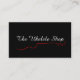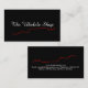 Una tarjeta de visita negra con un contorno rojo de la mitad de un ukulele a ambos lados. En la parte delantera está el nombre de la empresa en blanco y en la parte trasera los detalles del negocio. Es personalizable y por favor tenga cuidado al ordenar esto para que todo el texto sea personalizado. ¡Recuerden ambos lados!