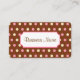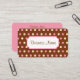 Los puntos rosa y crema de fondo marrón le dan un estilo retro a esta tarjeta de visita. Personalizar esta tarjeta de visita para satisfacer sus necesidades cambiando la información. Usa estos adorables polk como tarjetas de negocios de puntos para una panadería, boutique, tienda, heladería, chocolatero, guardería, escuela, preescolar, salón, guardería, etc. Los diseños son de arte original.