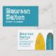 Surfer beach con la tipografía temática aventura tarjetas de negocios con acentos de personalizable turquesa y limón según sus especificaciones.