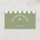 Impresionante tarjeta de visita de panadería con aspecto de tienda. Elegante diseño verde sabio y blanco con un delicioso quequito. Fácilmente personalizar con los detalles de su negocio. Doodles deliciosos.