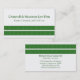 Esta moderna y profesional tarjeta de visita Simple Sleek Stripes en verde oscuro es la elección perfecta para un abogado destacado. Afilado y minimalista, este diseño presenta una doble banda de rayas audaces. Fácil de personalizar, simplemente agregue su información comercial en los campos de texto proporcionados. Haga clic en "Personalizar" para buscar opciones de personalización adicionales.