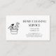 Simple tarjeta de presentación de servicio de limpieza Minimalista con servicio simple de limpieza Minimalista, diseñada para mostrar profesionalidad y fiabilidad mientras mantiene el diseño limpio y sencillo. Con una estética minimalista, nuestra tarjeta de visita incluye un sutil ilustracion de un cubo lleno de herramientas de limpieza, que representa la esencia de su servicio de limpieza. La sencillez del diseño garantiza que la información de contacto siga siendo el punto central, lo que facilita que los clientes potenciales encuentren y recuerden. Ya sea que esté en contacto con clientes potenciales o que deje sus datos en empresas locales, nuestra Tarjeta de presentación Simple de Servicio de Limpieza Minimalista es la herramienta perfecta para dar una impresión duradera y atraer nuevos clientes a su negocio de limpieza.