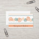 Modernos remolinos y rayas de melocotón, coral y azul. Nombre en la parte delantera con letra elegante, datos de contacto en la parte posterior.