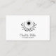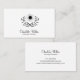 Una elegante y sencilla tarjeta de visita de terapeuta masajista con un sencillo patrón de hoja y sol, con un tipo de firma de estilo caligráfico como una simple tarjeta de visita en blanco y negro. Enumera tus propias especialidades de masaje. Sencilla elegancia.