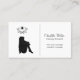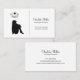 Una elegante y simple tarjeta de visita de terapeuta masajista con una silueta de figura sentada con un tipo de firma de estilo caligráfico como una simple tarjeta de visita en blanco y negro. Enumera tus propias especialidades de masaje. Sencilla elegancia.