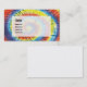 Tarjeta de presentación con diseño de tintes de corbata espiral en colores vivos. El texto se sienta en un rectángulo blanco parcialmente opaco para la visibilidad. Personalizar tu texto.
