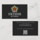 Dé una impresión duradera con este diseño elegante y profesional de tarjetas de visita con tatuajes. Perfecto para tatuajes y tiendas, esta tarjeta presenta un fondo negro o verde audaz con un impresionante gráfico floral tradicional estilo tatuaje que llama inmediatamente la atención. La tipografía elegante y el texto de personalizable garantizan que su marca se destaque mientras mantiene una estética limpia y profesional. La parte posterior de la tarjeta incluye toda la información de contacto esencial, como su nombre de negocio, dirección, número de teléfono, correo electrónico y sitio web, ordenados cuidadosamente para facilitar su lectura. Un cómodo código QR permite a los clientes conectarse rápidamente con sus medios sociales o sitios web, haciendo que sea fácil mostrar su cartera o citas de libros. Ideal para los tatuadores que quieren reflejar su creatividad y profesionalidad, este diseño de tarjeta de visita es lo suficientemente versátil como para adaptarse a varios estilos artísticos. Ya sea que esté en contacto, asistiendo a convenciones o entregando tarjetas en su tienda, este diseño garantiza que sus clientes se acuerden de usted.