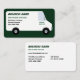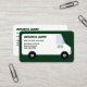 Un simple dibujo de una furgoneta de reparto está en la parte delantera de la tarjeta. Su nombre comercial, lema de la empresa, nombre, título y número de teléfono se imprimen en el panel lateral de la furgoneta comercial como si estuviera pintada allí. La furgoneta es blanca con letras verdes. La furgoneta está dibujada en un estilo minimalista, casi personalizado. Detrás de la furgoneta hay un sólido fondo verde oscuro que va con las letras verdes. La parte posterior tiene información de contacto adicional. Bien para los siguientes tipos de negocios: transporte por carretera, envío, logística, traslado, transporte y cualquier otro negocio que utilice una camioneta grande. La tarjeta también puede utilizarse para servicios móviles como limpieza, conserjería, camiones de comida, artesanos, fontaneros, electricistas, carpinteros, pintores, instalaciones domésticas, servicios de salud domiciliaria, HVAC, etc.
