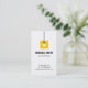 Una tarjeta de visita con un icono colgante sobre una plaza amarilla. Paleta de colores negro, blanco y amarillo. Perfecto para electricistas y aquellos que proveen servicios de instalación de cableado eléctrico y de iluminación. Personalice la información de su empresa en las plantillas de texto fáciles de leer.