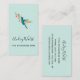 Elegante tarjeta de visita con un colibrí violeta sobre un fondo azul claro. El tipo de letra, el tamaño del tipo de letra y el color pueden cambiarse haciendo clic en "Personalizar más adelante".