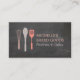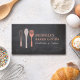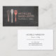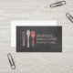 Un trío de utensilios de cocina comunes, junto con su nombre o nombre de compañía, hacen el logotipo perfecto en esta tarjeta de personalizable para una empresa de catering, panadería, restaurante o cualquier negocio de alimentación. Está situado sobre un fondo negro de pizarra y ofrece un ambiente culinario. © 1201AM CREATIVE