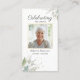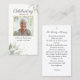 Una hermosa tarjeta de oración para regalar a la familia y amigos como regalo del funeral. El diseño presenta una foto en la parte delantera resaltada con un borde botánico de acuarela. Añade el nombre, el texto personalizado, el poema o la escritura favoritos al dorso para crear un recuerdo verdaderamente único.