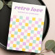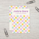 Tarjeta de visualización de joyería de diseño con un patrón de tablero de ajedrez rosa claro, amarillo, púrpura y azul acuático y su nombre de empresa o diseño con un estilo retro, color púrpura. Todos los colores son personalizable. Muestra tus pendientes con estilo con estas tarjetas de dibujo retro con un patrón de tablero de ajedrez pastel. Personalizable con el nombre y los detalles de su tienda, son perfectos para pequeñas joyerías