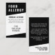 Tarjeta de alerta vertical de alergía de alimentos de color negro contemporáneo. Diseñada con un aspecto limpio y moderno, esta tarjeta vertical de alergia alimentaria es perfecta para cenar en restaurantes o asistir a eventos especiales. El frontal presenta un fondo negro negrita con fuentes blancas nítidas y un diseño minimalista. En la parte superior, se muestra claramente "ALERGÍA ALIMENTARIA" para una visibilidad fácil. Debajo, hay espacio para añadir tu nombre y una lista de alergias a alimentos para que el personal pueda revisar rápidamente qué evitar. La parte posterior de la tarjeta incluye una breve y respetuosa nota al personal de la cocina sobre la seriedad de sus alergias, junto con un espacio para enumerar un contacto de emergencia. Sencilla y profesional, esta carta ofrece tranquilidad con una presentación pulida, perfecta para mantener las cosas a salvo y al mismo tiempo mantener un aspecto refinado. Personalizable completo para satisfacer sus necesidades.