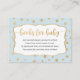Carta de petición de libros para niños de estrellas de oro azul con fondo azul claro y estrellas de oro. Agarra esta pequeña tarjeta con la invitación de tu ducha de bebé para pedirle a los invitados que "traigan un libro en vez de una tarjeta" para ayudar a construir la primera biblioteca del bebé! Póngase en contacto con el diseñador en info@lemontreecards.com para solicitar elementos coincidentes. Ver la colección completa a continuación.