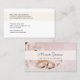Esta tarjeta de visita combina tonos beige y rosa pastel para crear un toque de elegancia femenina. La parte frontal muestra una caligrafía elegante, mientras que la parte posterior presenta un tipo de letra limpio y moderno para mayor claridad. Una fotografía de anillos de oro y elegantes flores le aporta un toque refinado y tranquilo, haciendo de esta carta la combinación perfecta de estilo y profesionalidad.