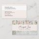 Los tonos beige y rosa pastel combinan este diseño con un encanto femenino, complementado por una elegante caligrafía en el frente y un tipo de letra elegante y legible en la parte posterior. La fotografía tiene flores delicadas, puedes conservar esta imagen o reemplazarla por una de tus propias.