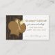 Esta tarjeta de visita simplemente elegante para un cocinero, un restaurante, un negocio de abastecimiento personales etc. ofrece un fondo de los cubiertos, el gorra de un cocinero estilizado y bifurcación y cuchara del oro. Modificado para requisitos particulares fácilmente. La parte posterior tiene el fondo de los cubiertos en dos sombras de chocolate pero usted puede quitar fácilmente el fondo y añadir más Info si usted desea.