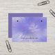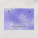Una explosión de lavanda helada, rayos azules y grises emana del centro de esta tarjeta de visualización de pendientes. Dos puntos negros indican dónde se deben perforar los agujeros para los pendientes. NINGÚN AGUJERO SERÁ PREPUNTADO en la tarjeta. La parte trasera es una lavanda oscura y lisa, con espacio para la información de su negocio.