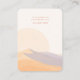 Esta cálida y serena tarjeta de visualización de joyas cuenta con un minimalista paisaje desértico con dunas en capas en tonos melocotón, lavanda y dorados, todo ello contra un gran sol. La tranquilizante paleta de colores y formas abstractas crean un entorno moderno y terrenal, perfecto para mostrar pendientes hechos a mano, collares o accesorios. El texto de personalizable en la parte delantera y posterior permite tu nombre de marca, sitio web e información de contacto. Una gran elección para el embalaje de joyas boho, naturales o artesanales.