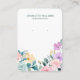 Esta encantadora tarjeta de visualización de joyas cuenta con un jardín acuarela de flores de primavera blandas en tonos pastel de rosa, lavanda, amarillo y azul, que florece en las esquinas inferiores. El fondo blanco ofrece un lienzo limpio y brillante que llama la atención sobre tus pendientes, collares o accesorios artesanales. El texto del personalizable en la parte delantera y posterior le permite resaltar su nombre de marca, su sitio web y la información de contacto. Perfecto para un empaque estilo boutique que se siente fresco, femenino y lleno de encanto de temporada.