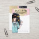 © Socialite Designs Inc. & LICENSORS. Muestra tus pendientes artesanales con elegancia y estilo usando esta tarjeta de visualización de joyería para ganarse la atención por diseños socialitas. Con el mismo elegante chica adornado con joyas que tu tarjeta de presentación, esta distribución de retratos está cuidadosamente diseñada con marcas de colocación para pendientes, lo que lo hace perfecto para empaques boutique, ferias de artesanía o pedidos online. Los tonos suaves y dorados evocan calidez y sofisticación, mientras que el ilustracion caprichoso aporta un toque personal y artístico. Ya sea que vendas creaciones de cuentas, tesoros reutilizados o delicados estuches hechos a mano, esta tarjeta de presentación eleva tu presentación y refuerza tu identidad de marca. Póngalo en pareja con su tarjeta de visita para que los clientes tengan un aspecto coherente y profesional que recordarán.
