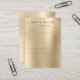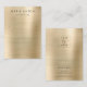 Una imagen metalizado de imitación de color dorado proporciona el fondo para el personalizable de sans negros serif y el texto cursiva, guías ajustables de anclaje y espacio en el reverso para su logotipo (o borrar si lo desea).