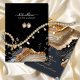 Una moderna, minimalista y ágata negro elegante lujosa pantalla de joyería con elegante caligrafía moderna y moderna tipografía de estilo simple con letras a mano , todos los textos son personalizable, añada sus medios sociales, sitio web y correo electrónico en el reverso.