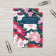 Este patrón floral rojo y colorido femenino con la tarjeta de visualización de los arcos azules del follaje verde frondoso cuenta con dos guías de orificios impresos que debes sacar. El nombre de la tienda y la dirección web se pueden agregar a esta hermosa tarjeta de presentación.