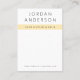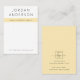 Tarjetas de presentación de pendientes blancas y amarillas claras con tu marca en un tipo de letra sans serif moderno con texto personalizado debajo sobre una banda amarilla clara.