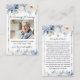 Honre la memoria de un ser querido con nuestra tarjeta de fotos de la oración conmemorativa de las flores azules. Con un diseño sereno de flores azules suaves, esta tarjeta conmemorativa ofrece espacio para una foto preciada y una oración o mensaje de corazón. Perfecto para servicios funerarios o reuniones conmemorativas, ofrece una hermosa manera de celebrar y recordar una vida bien vivida. Imprimido con cartón de alta calidad, este elegante y personal sake garantiza que tu ser querido sea recordado con gracia y dignidad. *** Por favor introduzca H164 en la búsqueda de la tienda para encontrar todos los artículos coincidentes *** O visite nuestra Colección Funeral de Flores Suaves. *** Este diseño de alta calidad es fácil de personalizar para que coincida con tus colores, estilos y temas de celebración. Para una mayor personalización, haga clic en el enlace "Editar usando la herramienta de diseño" y utilice nuestra herramienta de diseño para modificar esta plantilla. Si necesita ayuda o elementos coincidentes, por favor contáctame.