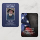 Azul ocmbre con tu foto favorita en el marco. Se utiliza la tipografía moderna. En la parte posterior de la tarjeta hay texto adicional que se puede personalizar superponiendo la bandera de Estados Unidos.