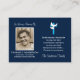 Celebra la vida de tu ser querido en su funeral o funeral repartiendo estas tarjetas de plegarias de fotos conmemorativas del Clásico Azul. El diseño es digno, con un fondo azul y una cruz azul que simboliza la paz con una paloma blanca. Inserte una foto de su ser querido, junto con su nombre, fecha de nacimiento y muerte. Comparte un poema o palabras en su memoria en el lado derecho de la tarjeta. Rótulo esta tarjeta conmemorativa con tu apellido en la parte inferior.
