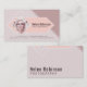 Un diseño suave y femenino para una tarjeta de visita con su foto. En el frente, las características del diseño su fotografía en una forma del diamante, rodeada por el diamante gráfico blanco forman en melocotón suave, lila y tonos rosados. En la parte posterior, el diseño se repite en los mismos colores con su nombre y empleo en un texto más grande.