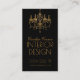 Tarjeta negra del diseñador interior de la lámpara de araña dorada. No pierdas la oportunidad de conseguir este diseño. Original. ¡Vendido sólo en Zazzle! El diseño es único. Ideal para todo tipo de negocios femeninos.