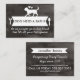 Promueve tu negocio de preparación de perros con estilo usando esta elegante tarjeta promocional negra. Con un fondo de color de agua negro de moda, lujosas siluetas de perro y texto en negrita, esta tarjeta está diseñada para llamar la atención y atraer nuevos clientes. El texto del personalizable actualmente dice: "¿El perro necesita una bañera? Déjanos mimar a tu mejor amigo. Obtén $5 de tu primer novio", pero puedes adaptarlo fácilmente a tus necesidades empresariales. Perfecto para repartir en eventos, incluso en materiales de marketing, o mostrar en su tienda, esta tarjeta forma parte de un completo kit de marketing disponible en nuestra tienda. Aumente sus servicios de preparación con esta sofisticada y eficaz tarjeta promocional.