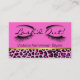 Tarjeta de visita de moda hecha en una rosa fuerte, con un acento manchado rosado y negro del modelo del jaguar, y gráficos de pestañas y de cejas, en la parte delantera superior. La parte posterior se hace en negro, con la impresión del jaguar, en el lado izquierdo afilado con oro. El texto negro y rosado, en el frente y la parte posterior, está listo para personalizar a sus necesidades. Precioso destaqúese la tarjeta que embala una primera impresión del atontamiento.