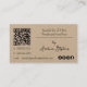 Wreath floral hecho a mano | Tarjeta de presentación de papel Kraft artesanal — Incluye flores de arte de línea que envuelven los lados izquierdo y derecho del frente de la tarjeta, junto con su nombre de negocio y dirección del sitio web. En la parte trasera hay un código QR de personalizable para la dirección web de su elección, la línea de etiqueta en la parte superior derecha con una línea y su nombre debajo. La parte inferior izquierda incluye campos de plantilla opcionales para los números de su oficina y de teléfono móvil, así como su dirección de correo electrónico. La parte inferior derecha presenta una variedad de íconos de medios sociales —puedes usarlos para este propósito, intercambiarlos por íconos de tu elección o borrarlos por completo. Todos los colores, textos y fondos son editables.