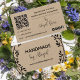 Wreath Vines Handmade | Tarjeta de presentación de papel Kraft artesanal — Presenta viñas de flores que crecen a la izquierda y a la derecha de la parte delantera de la tarjeta, junto con su nombre comercial y dirección del sitio web. En la parte trasera hay un código QR de personalizable para la dirección web de su elección, la línea de etiqueta en la parte superior derecha con una línea y su nombre debajo. La parte inferior izquierda incluye campos de plantilla opcionales para los números de su oficina y de teléfono móvil, así como su dirección de correo electrónico. La parte inferior derecha presenta una variedad de íconos de medios sociales —puedes usarlos para este propósito, intercambiarlos por íconos de tu elección o borrarlos por completo. Todos los colores, textos y fondos son editables.