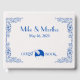 Con un auténtico estilo Art Decó vintage que ha sido reproducido a mano cuidadosamente, este elegante libro de visitas personalizado es perfecto para bodas o cualquier otra ocasión especial, como duchas de novias o fiestas, y hará un maravilloso toque de queda que será valorado por años. Siguiendo la tradición del Gran Gatsby de los años 1920, este libro de huéspedes presenta rincones decorativos ornamentados con letras en azul cobalto sobre un falso fondo texturizado de papel blanco. Haga clic en el botón azul "Personalizar" para añadir sus propios nombres, fechas en cualquier otro texto que desee.