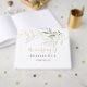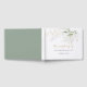 Este libro de bodas de follaje verde dorado es perfecto para un boda rústico. Este diseño artístico presenta acuarelas de color oro y follaje verde de inspiración natural. Personalizar la portada y la columna vertebral para incluir los nombres de la novia y el novio y la fecha del boda.