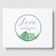 Este libro de bodas incluye hojas de palmera tropicales acuáticas en tonos botánicos de verde. La palabra "Amor" está establecida en una tipografía de escritura elegante. Utilice los campos de plantilla para agregar los nombres personalizados y la fecha de boda. Visita www.zazzle.com/dotellabelle para ver el tema de la boda de destino completo. Arte acuático y diseño de Victoria Grigaliunas de Do Tell A Belle